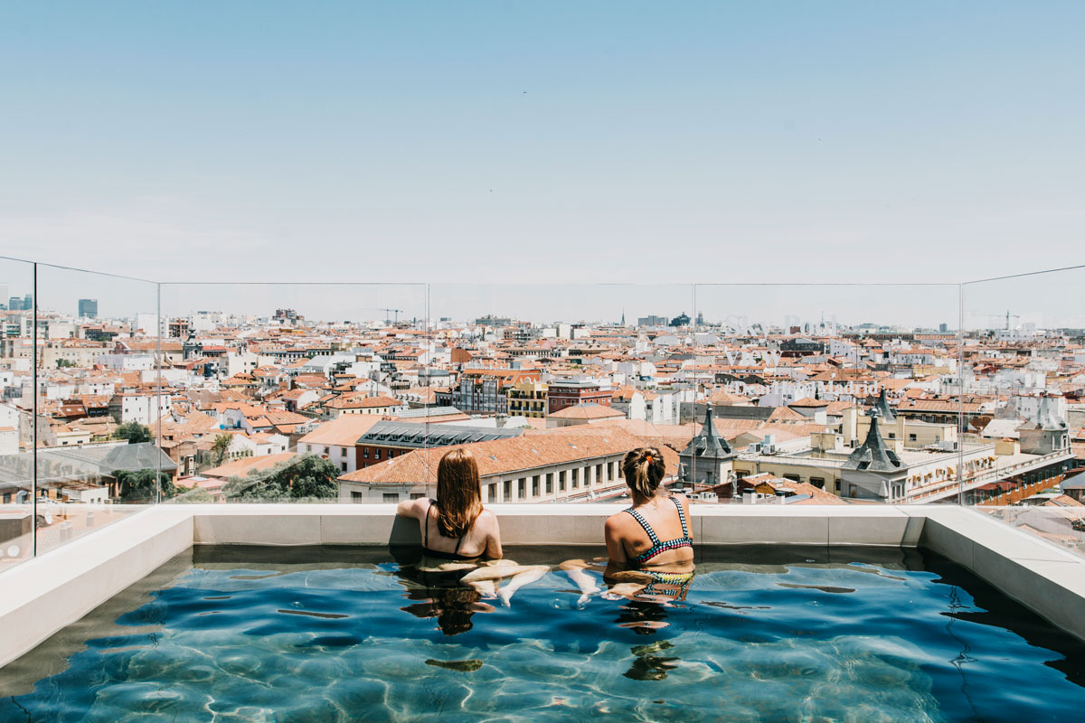 This photo gallery takes you on a trip through the beauty and comfort of our hotel facilities in Madrid. You can explore the design of our rooms and see in images our restaurant, rooftop, pool, and views of the city.